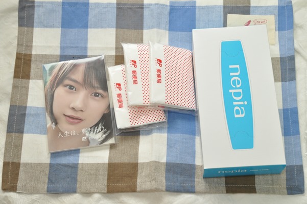 よく行く郵便局なんで、ノルマとかの大変そうなんで、っと、前々から話しして、100枚買ったら、かなり喜ばれて、これだけの粗品をくれた。「暑中お見舞いは売れないのよ」と言っていた。