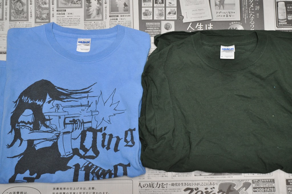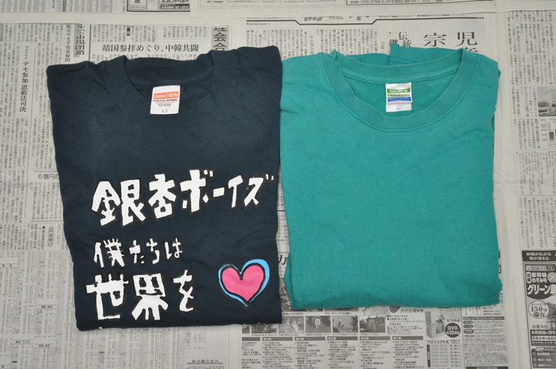 左から、銀杏ボーイズ(ライブTシャツ)、無地。