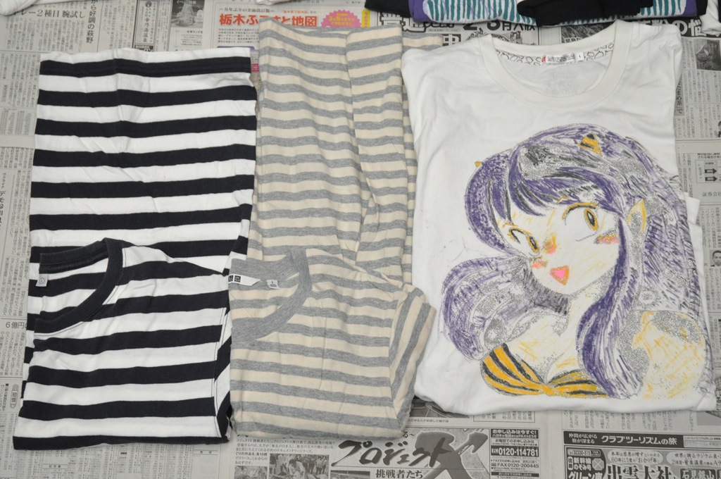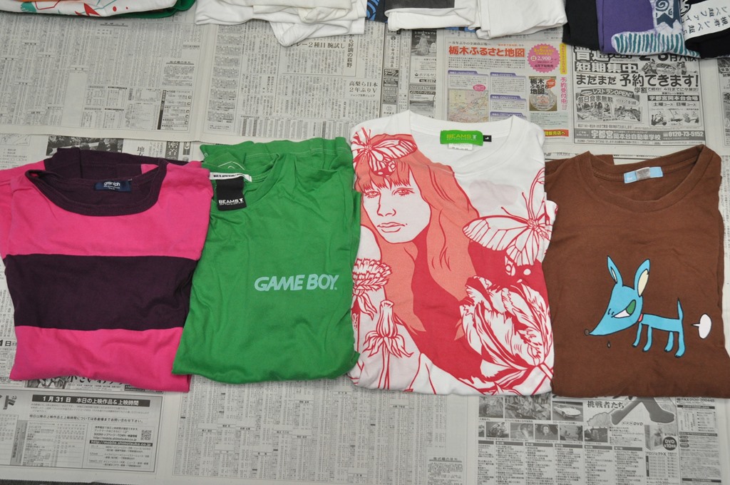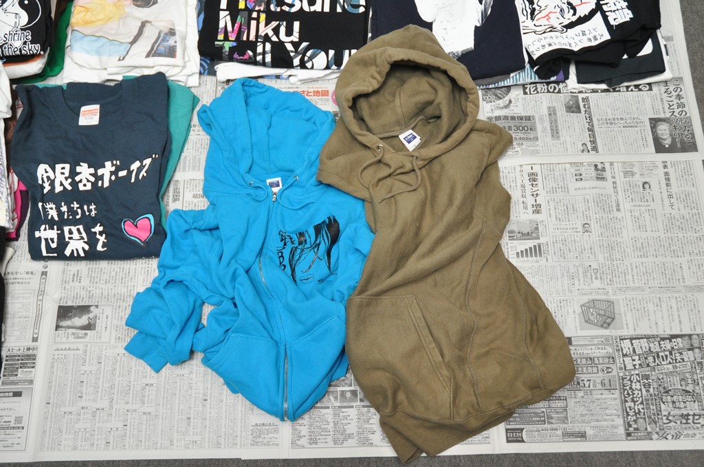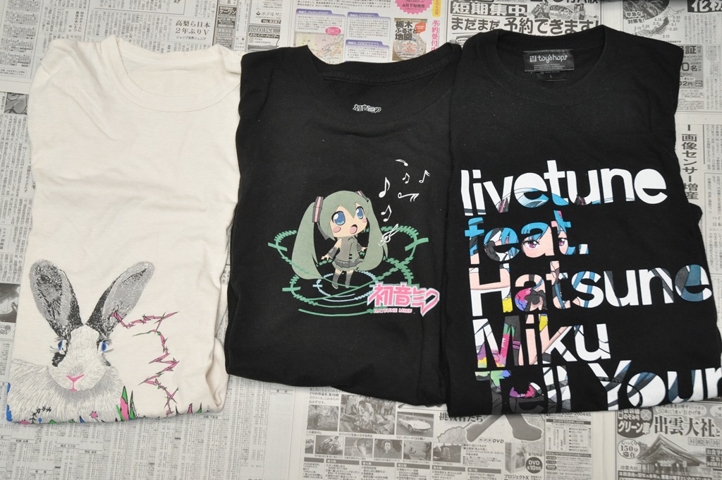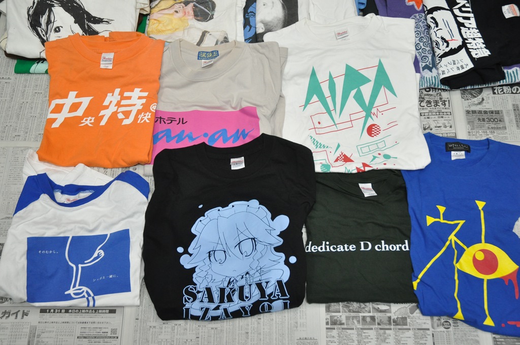 左から、中央線T、中央線系T、タワーレコード新宿限定(aira mitsuki)、動物殺傷反対T、ゲームT(東方)、toddle、神聖かまってちゃん。